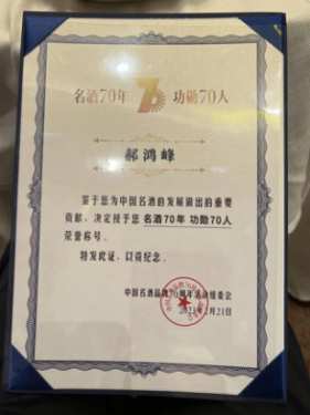 据了解,从1952年的第一届全国评酒会举办至今已有70年时间,在这70年间,无数的酒业从业者前赴后继,造就了中国酒业如今在世界的地位。本次活动经行业推选和组委会评审和公示,有70位为中国酒业建设发展做出突出贡献的优秀公民入选了“名酒70年功勋70人”名单,酒仙集团董事长郝鸿峰校友作为酒水流通领域的领军人物成功入选。