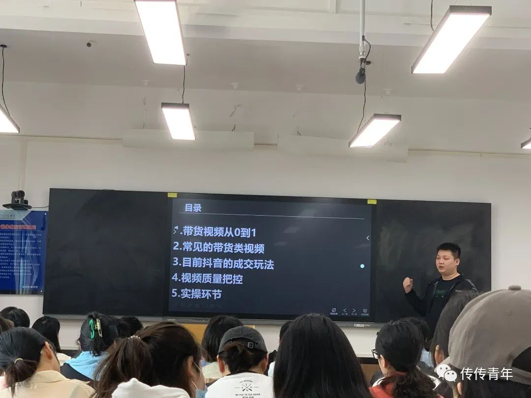 杜阳结合广播电视学专业、广播电视编专业的特点,针对项目化教学的要求,主要向大家介绍了抖音运营的技能和方法。他结合自己的成长过程和亲自运营的项目,从人、货、场,内容运营、产品运营、活动运营等方面,做了较为详细的介绍。同时针对不同渠道平台,流量投放的方法和底层逻辑的讲解,用视频案例方式,向大家展示了“带货视频如何从0到1”的过程。充实的内容和专业严谨的数据,让同学们对做好运营有了一定的认知和期待。