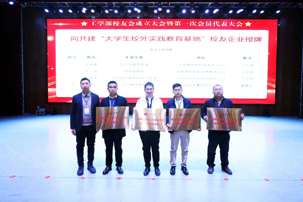 杨保成为受聘为工学部首届校友导师的10位校友颁发聘书。张崇杰向与工学部合作的校友企业授“共建大学生校外实践教育基地”牌匾。罗煜讲话。他说,黄科院在改革开放的大潮中诞生,在开拓拼搏、实干奉献中发展壮大,取得了多个全国第一和唯一,已建设成为一所中国特色社会主义民办大学,培养的30余万毕业生深受社会各界的欢迎,胡大白董事长和黄科院的办学事迹得到党和政府的充分肯定,多次被中外知名媒体报道。他介绍了校友参与校庆的形式、内容、方式、方法,强调学校一直把校友工作作为人才培养体系建设的重要方面,积极推进各地方、各学院(学部)校友会的建设和发展。他相信工学部校友会一定会全力为校友服务,提供资源、平台和机会。