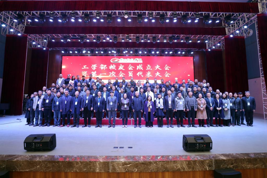 与会领导与嘉宾以及新当选的第一届工学部校友会领导集体合影留念、与工学部校友理事会第一届全体理事合影留念、与全体与会校友代表合影留念。