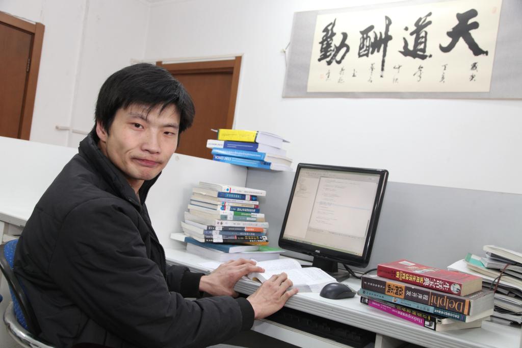 在我校专科学习即将结束时,大奎面临了一次至关重要的选择:是继续读书,还是就此结束?大奎说:“我当时比较消极。因为许多身体健全的名校毕业生都不容易找到工作,更何况我的身体条件还是这样。我看不到继续读书的希望,所以当时的想法就是不上学了,不再给父母增添负担了。”但父母知道大奎的想法后,既引导他,又逼迫他,希望他继续读书。为了不让父母失望,大奎在临近专升本考试的前半年,把自己关在宿舍里,每天没日没夜地复习,连一日三餐都请同学帮忙从食堂带回来。天道酬勤,2006年,他顺利通过专升本考试,被河南理工大学计算机学院录取。