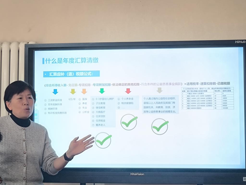 各位与会校友与友人分别做了自我介绍。1994级计算机校友田淑凤结合2025年3-6月国家的个税汇算清缴政策,解析可申报节税的项目内容,及注意事项、以及个人养老金等实用知识,助力校友税务规划。
