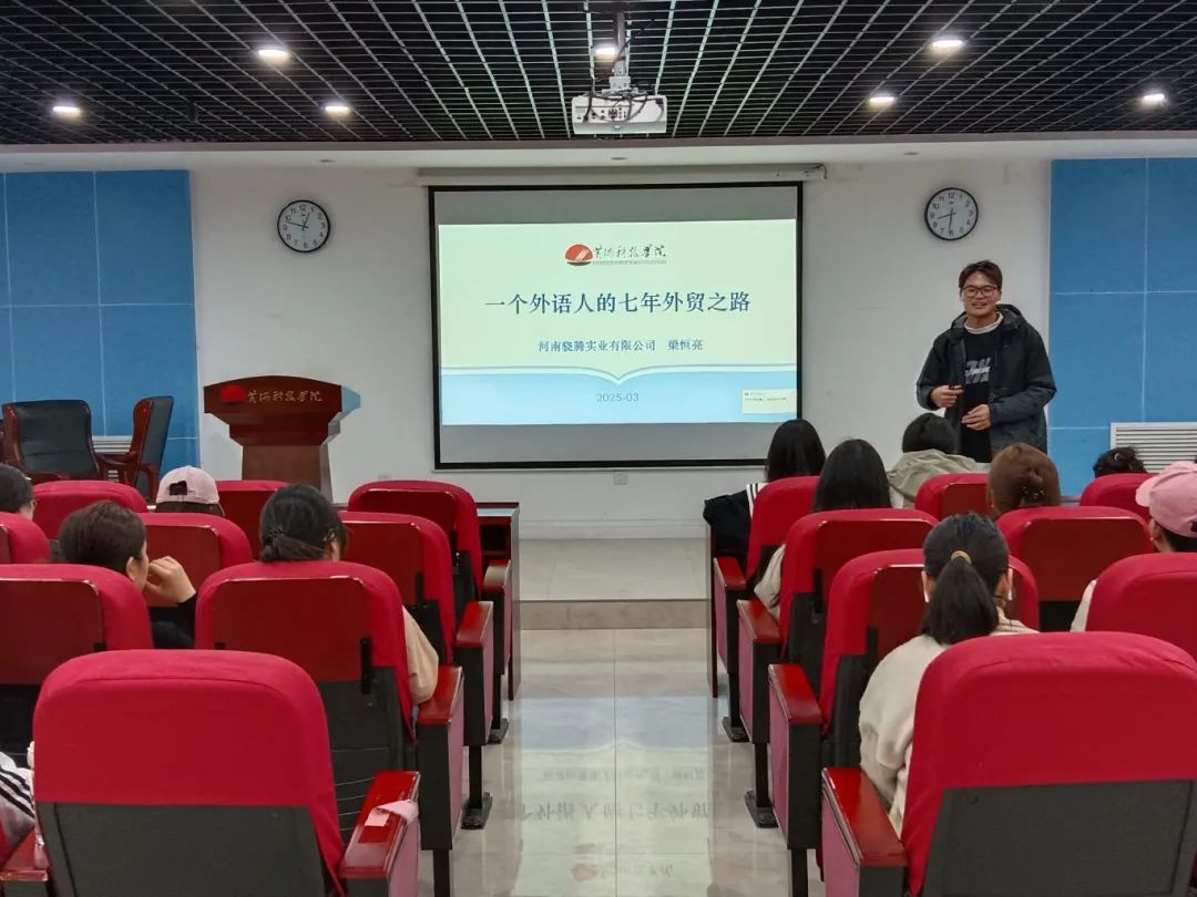 为发挥校友的榜样力量,助力在校生职业发展,3月20日,商学部外语科教中心于商学部北楼608教室举办校友分享会。分享会由校友梁恒亮主讲,他结合其7年外贸经历分享了心得。分享会由外语科教中心辅导员王洪剑主持,中心全体学生参加。
