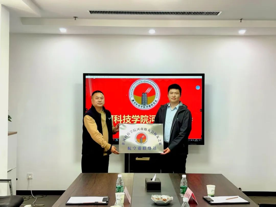 会议最后,在校友们和企业代表的见证下,贺勇与蔡亮举行了庄重的河南校友会航空港区联络站授牌仪式。
