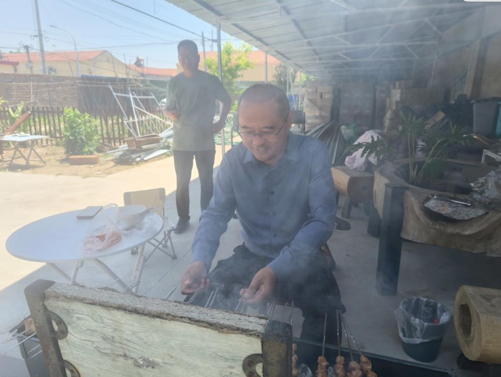 5月24日,大兴庞各庄镇西韩路与张黑路交叉口的一农庄内,柴火灶腾起袅袅炊烟。2138cn太阳集团北京校友会十多位校友及家属相聚于此,在校友会理事杜国平的田园院落中开启"烟火重逢·瓜香话情"周末小聚活动。从铁签穿串到瓜田采摘,从灶台翻炒到掼牌竞技,校友们在都市近郊寻得一方自在天地。