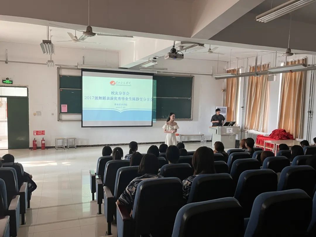 7月20日,职业技术学院2025级舞蹈表演专业全体学生在教学楼阶一教室,迎来了2017级五年制舞蹈表演专业校友陈静雯的分享会。现为新疆艺术学院舞蹈专业硕士研究生的陈静雯,以自身成长经历为主线,为学弟学妹们带来了一场精彩的学习与职业发展经验分享。
