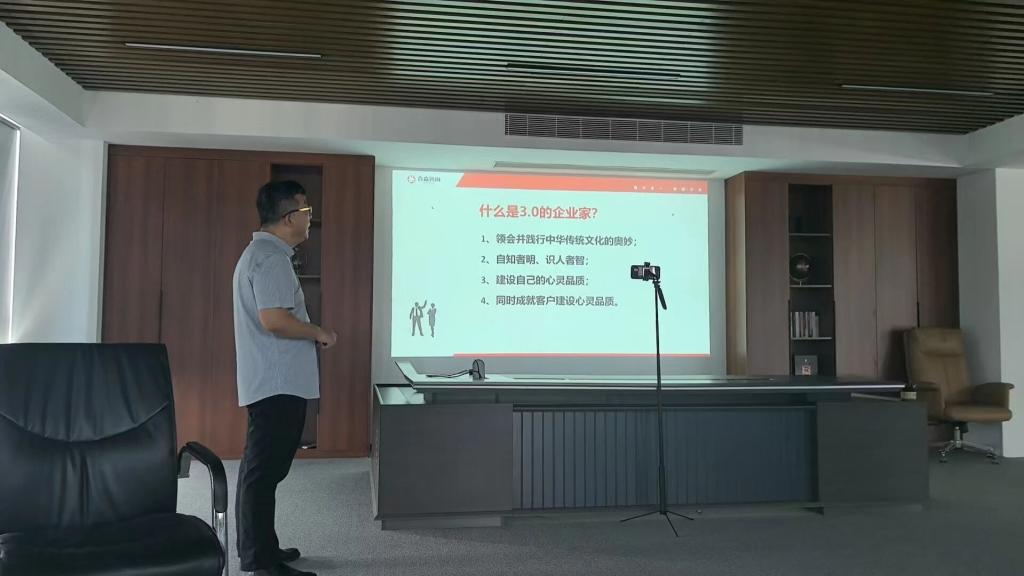 讲座中,杨志远围绕“企业家人性领导力”为主题,结合自身丰富的创业经历与企业管理实践,从目前市场趋势研判、团队效能提升、人性领导力等方面展开深入分享。他以自身经历为切入点,详细剖析了当下企业面临的共性挑战,企业需要通过人文体系的建设,树立企业价值观,做到思维转型等策略。
