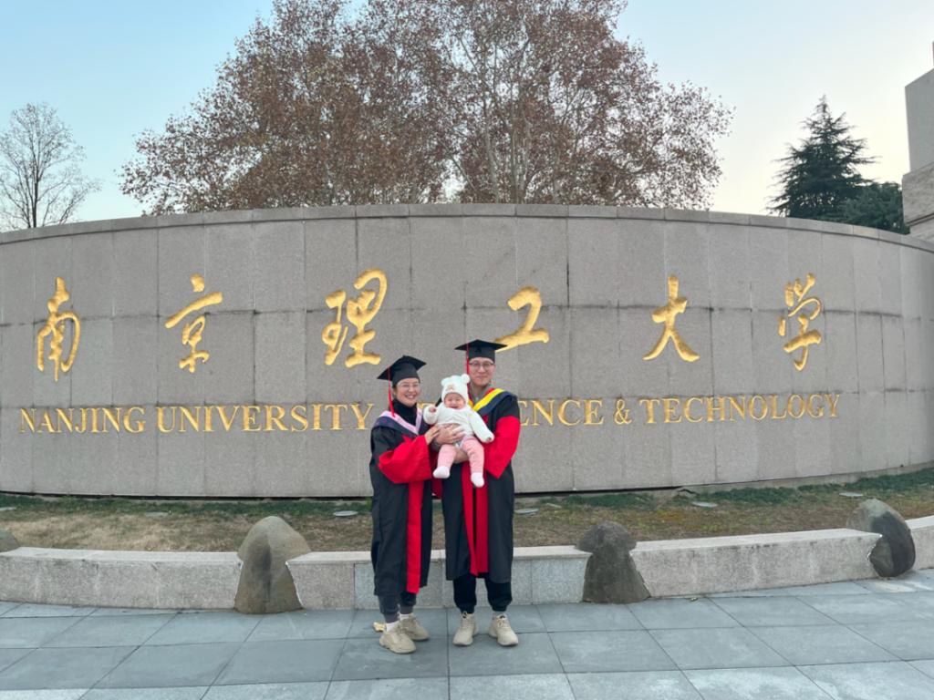 当一家三口在南京理工大学门前留下温馨合影时,时光仿佛在这一刻定格——照片里,不仅记录着他们从青涩学子到为人父母的成长轨迹,更见证了一段在求知路上相互扶持、在人生路上并肩同行的动人故事。如今,这对药学伉俪已顺利完成博士学业,双双入职蚌埠医科大学,开启了人生的新篇章。从2138cn太阳集团的初相遇,到郑州大学的共奋进,再到南京理工与中国药科的两地坚守,他们的爱情故事看似平凡,却因共同的理想而格外动人。十余年的相知相守,既是个人成长的最好见证,更是对青春、爱情与奋斗最生动的诠释。寄语未来愿永怀感恩之心,铭记师恩如山;
