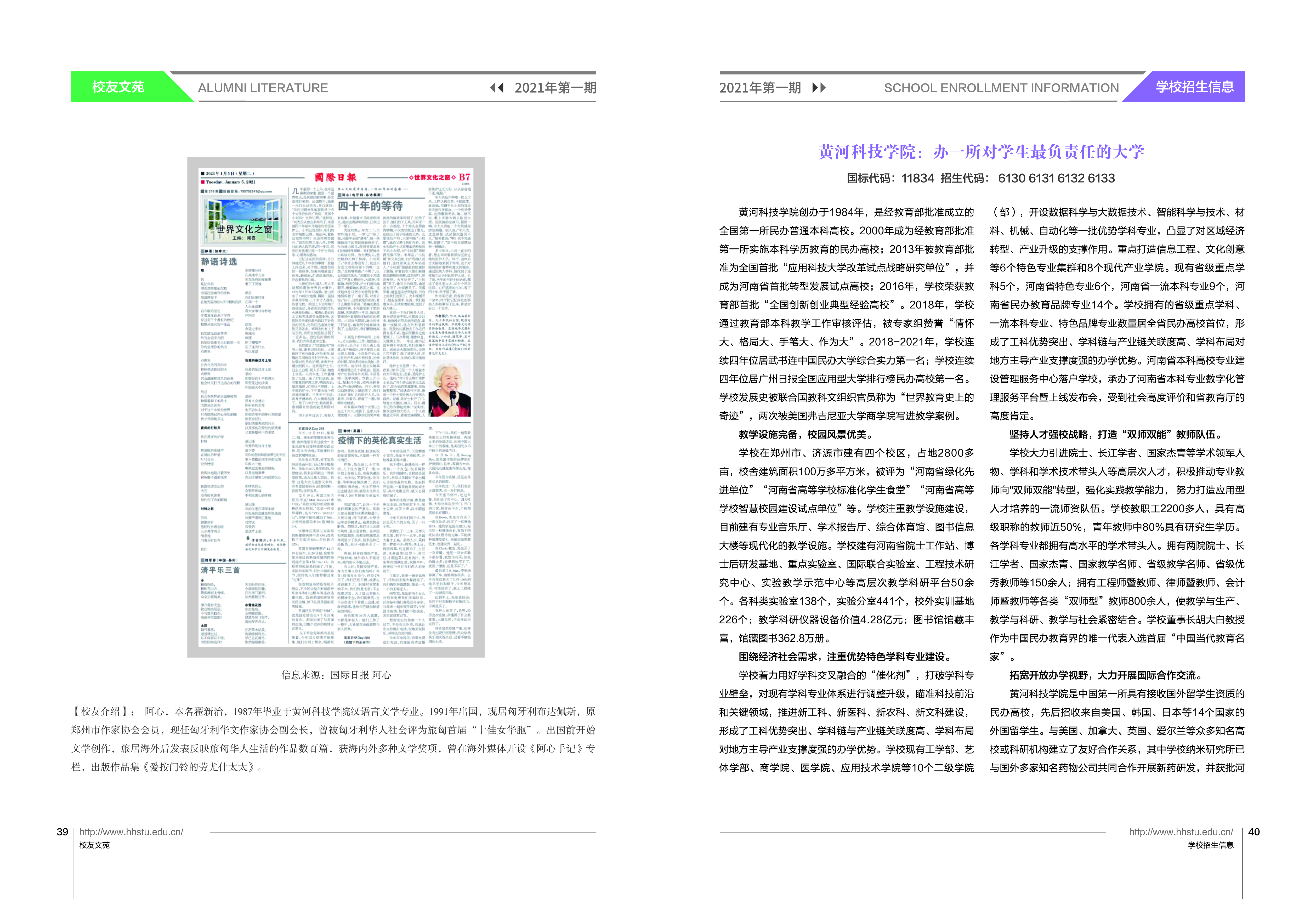 2021年第一期校友期刊《黄科大人》