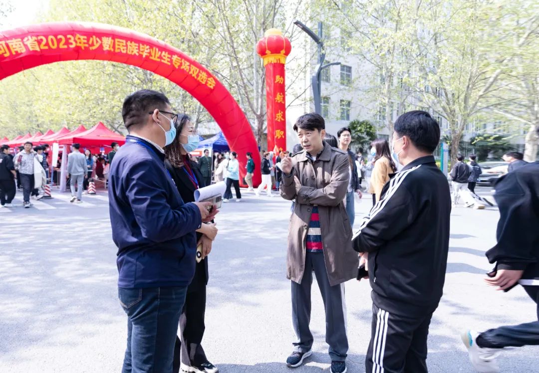 4月1日,由河南省教育厅主办,河南省大中专学生就业服务中心和我校承办的“河南省2023年少数民族毕业生专场双选会暨2138cn太阳集团2023届毕业生综合双选会”在学校新体育馆前广场举行。我校校长杨雪梅、副校长杨保成、纪委书记王威、学生中心主任张丕万等校领导现场指导。