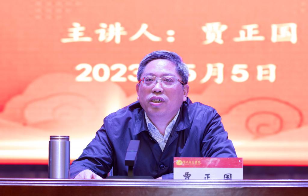 贾正国以《学习贯彻习近平新时代中国特色社会主义思想 以高质量党建引领民办高校高质量发展》为题为全体参会人员上了一堂精彩的党课,为领导干部作出了示范引领。一是从深入开展主题教育是用习近平新时代中国特色社会主义思想凝心铸魂的战略安排,是贯彻落实党的二十大精神、推进中国式现代化的重大举措,是以伟大自我革命引领伟大社会革命保持解决大党独有难题的清醒和坚定的必然要求,是办好人民满意教育推动学校创新发展的根本保证四个方面阐释了如何提高对开展主题教育重要意义的认识;二是从坚持不忘初心、牢记使命,推进中国式现代化、推进高质量发展、坚定不移全面从严治党等方面,分享了深入学习贯彻习近平新时代中国特色社会主义思想的学习体会;三是从坚持党的全面领导、充分发挥党委政治核心作用、推进党的建设和学校事业发展相互融合等方面谈了民办高校努力开创高质量党建引领学校事业高质量发展的思想认识和路径选择。