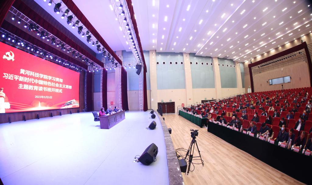 5月5日,我校学习贯彻习近平新时代中国特色社会主义思想主题教育读书班在艺术中心隆重开班。校党委书记贾正国为全体参会人员上党课,党委副书记、董事长胡大白主持并对读书班学员提出要求。