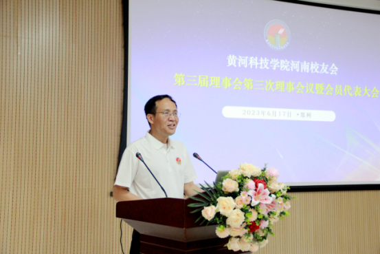 罗煜讲话。他代表学校和校友总会,向各位校友相聚母校表示热烈的欢迎,对长期关注和支持学校发展的校友们表示诚挚的感谢。罗煜介绍了近年来黄河科技院改革发展成就,对河南校友会工作取得的新突破、新发展表示认可,他指出,校友是母校的宝贵财富,无论校友们走到哪里,都闪烁着“黄科院”的光芒,都是母校的牵挂。