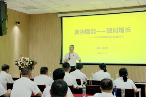 当天,河南校友会还同期举办了第五届“校友成长论坛”,由河南校友会顾问吴永生校友做主题为“聚势赋能 破局增长”的报告,为校友企业发展和成长赋能、增长,参会校友们享受了一场精神大餐,反响强烈。论坛由副会长焦金鹏校友主持。