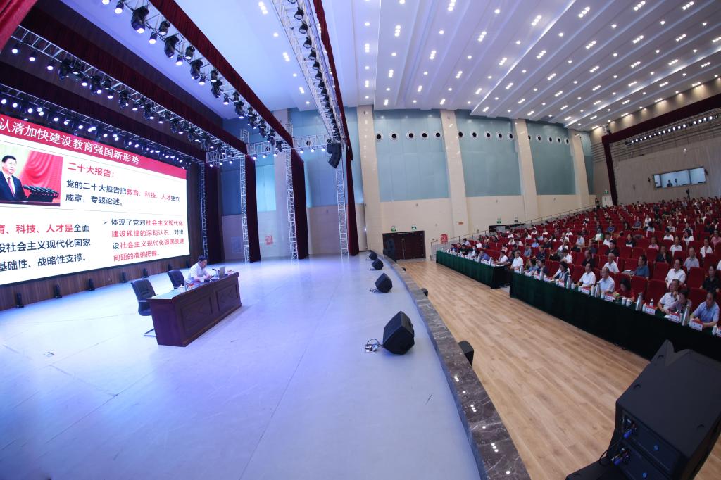 董事长胡大白在首场报告开始前指出开办本次研讨班的背景和意义。她说,这是在学校深入开展主题教育,深入学习贯彻习近平总书记关于教育强国建设的重要讲话精神,贯彻省委教育强省重大部署,不断深化学校教育教学改革,推动学校高质量发展背景下的一项重要安排,是主题教育学思想见行动,坚持以学铸魂、以学增智、以学正风、以学促干,努力推动学校在新时代实现新跨越的重要举措,也是一次统一思想、提高认识的骨干培训。她希望大家集中精力,认真听课,深入研讨交流,进一步开拓新视野、激发新思维、引领新发展,把上级的决策部署转化为学校改革发展和实现一流应用技术大学目标的政策设计和实践路径,为教育强省贡献学校的力量。
