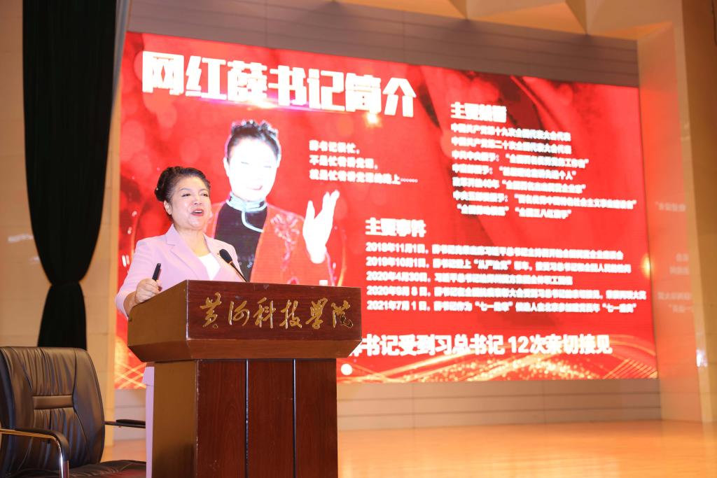 仪式结束后,“未来她力量·留郑绽芳华”支持女大学生就业创业行动中“梦想照进课堂”活动开启,郑州市妇联兼职副主席、郑州市女企业家协会会长、郑州圆方集团党委书记、总裁薛荣为大家带来第一讲——《信仰的力量》。