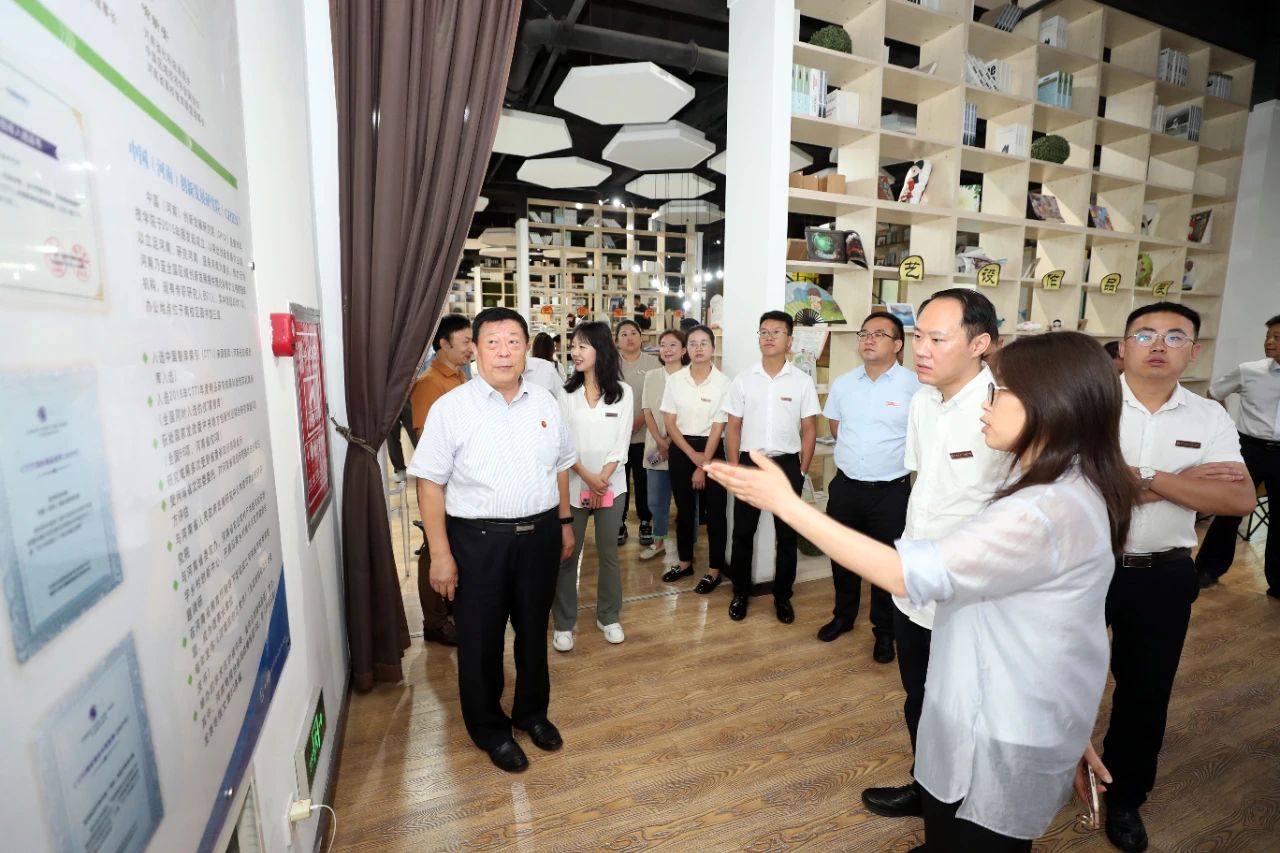 座谈会前,杨飞一行调研了学校图书馆、河南中原创新发展研究院、创客工厂、中国民办教育博物馆、智慧教育馆、党建馆等地。