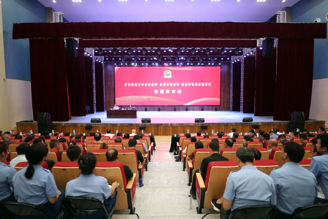 研讨班上,我校医学部部长、中国高等教育学会地方高校研究分会理事长屈凌波作本科教育教学审核评估报告;我校学术委员会副主任、商学部部长、河南中原创新发展研究院院长喻新安对党的二十届三中全会精神进行了系统阐释和深入解读;我校特聘专家、国家国防教育著名专家、黑龙江省军区原副司令员金恩祥将军深入解读了党的二十届三中全会精神的军事篇。