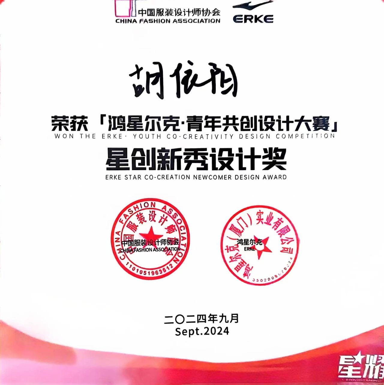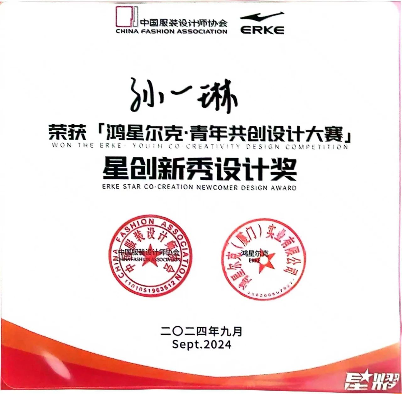 9月12日,在鸿星尔克青年共创设计大赛总决赛上,我校2022级服装与服饰设计专业学子孙一琳的设计作品《精卫》和胡依阳的设计作品《山止川行》从中脱颖而出,获得“星创新秀设计奖”。