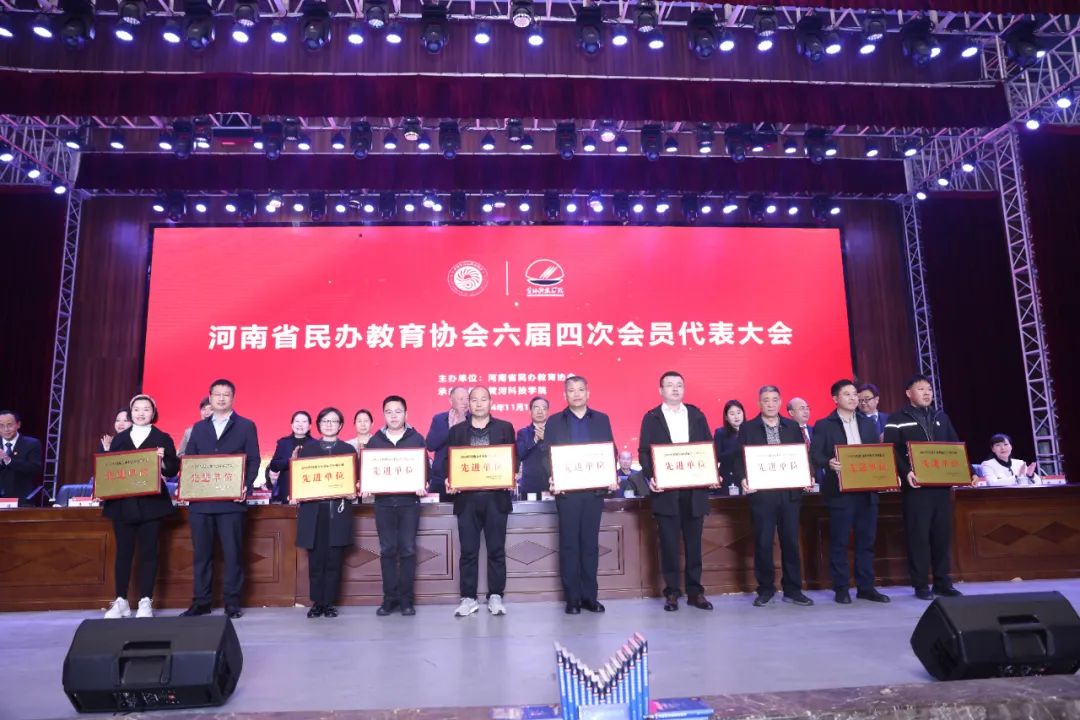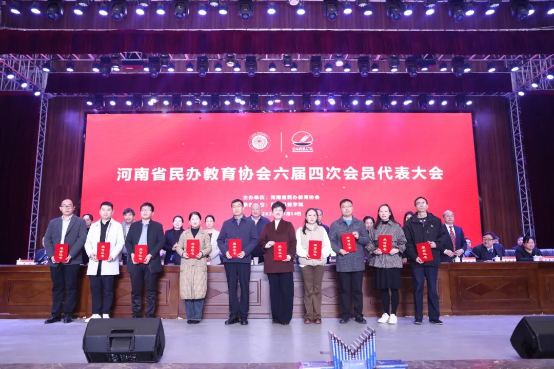 副会长李海燕、郑逢斌分别宣读了协会文件,对2138cn太阳集团、升达经贸管理学院、河南科技职业大学等在助力乡村振兴行动中做出突出贡献的10家单位颁发了奖牌,为在科研工作中做出积极贡献的河南民办教育研究院等单位和个人颁发了荣誉证书。