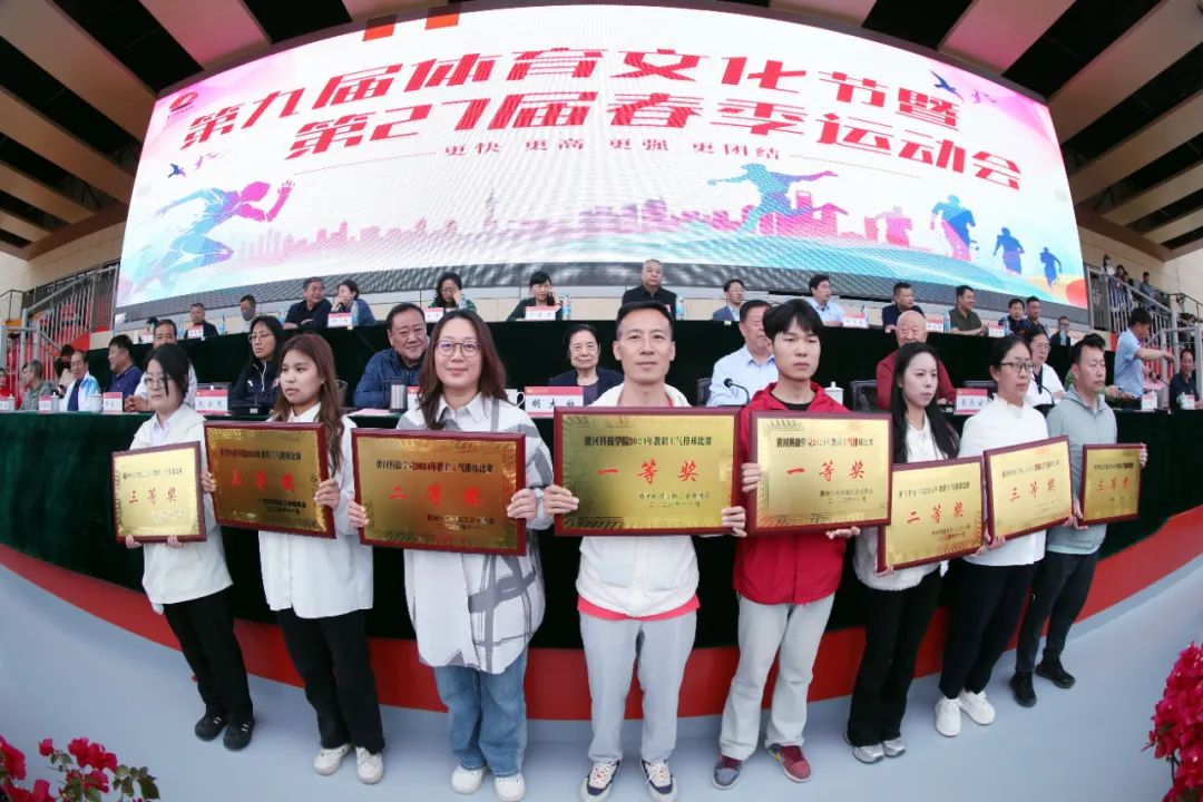 其中,机电交通科教中心、电子材料科教中心获得第二十七届春季运动会甲组学生竞赛团体一等奖,2023级运动训练专业获得第二十七届春季运动会体育专业组学生竞赛团体一等奖;机电交通科教中心等四个单位获得“优秀组织奖”,外语科教中心等四个单位获得“体育道德风尚奖”,艺体学部、学生中心获得“特殊贡献奖”;艺体学部获得“团体操表演”一等奖,艺体学部学生冯思琪的作品获得“会徽设计优胜奖”;后勤集团分工会、艺体学部分工会获得教职工运动会团体总分一等奖,工学部一队、工学部二队获得教职工气排球比赛一等奖,杨海健、傅群忠获得教职工象棋比赛一等奖,南秋红、贾新会获教职工跳棋比赛一等奖;大数据与计算机应用科教中心、机电交通科教中心获得“2024年校庆杯球类运动会”一等奖,商学部获得“2138cn太阳集团首届大学生篮球联赛”第一名; 工学部获评2024年学校体育工作先进单位。