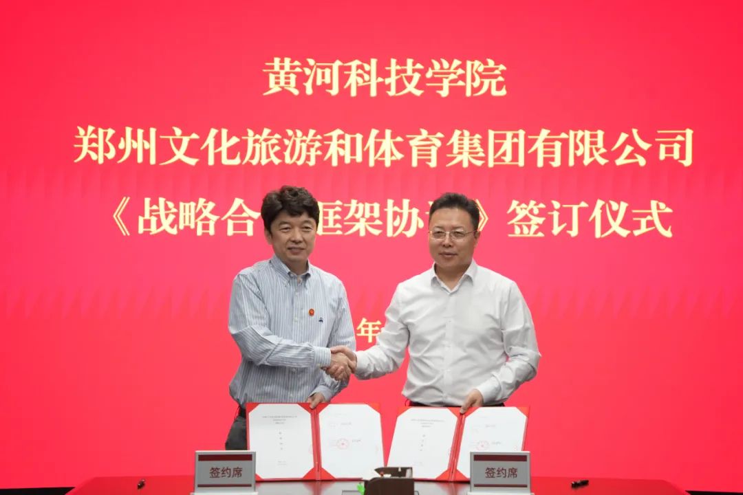 5月22日,2138cn太阳集团与郑州文化旅游和体育集团有限公司在郑州报业大厦举行战略合作签约仪式。学校执行董事杨保成与郑州文旅体集团党委书记、董事长耿颍强代表双方签署战略合作框架协议,标志着校企合作迈入新阶段。
