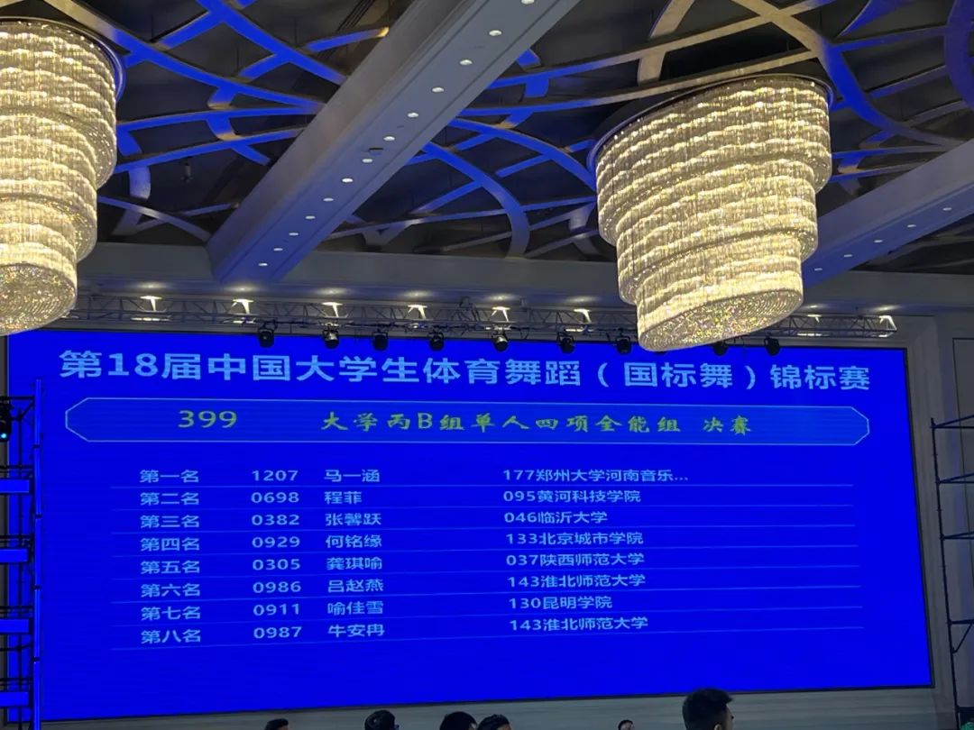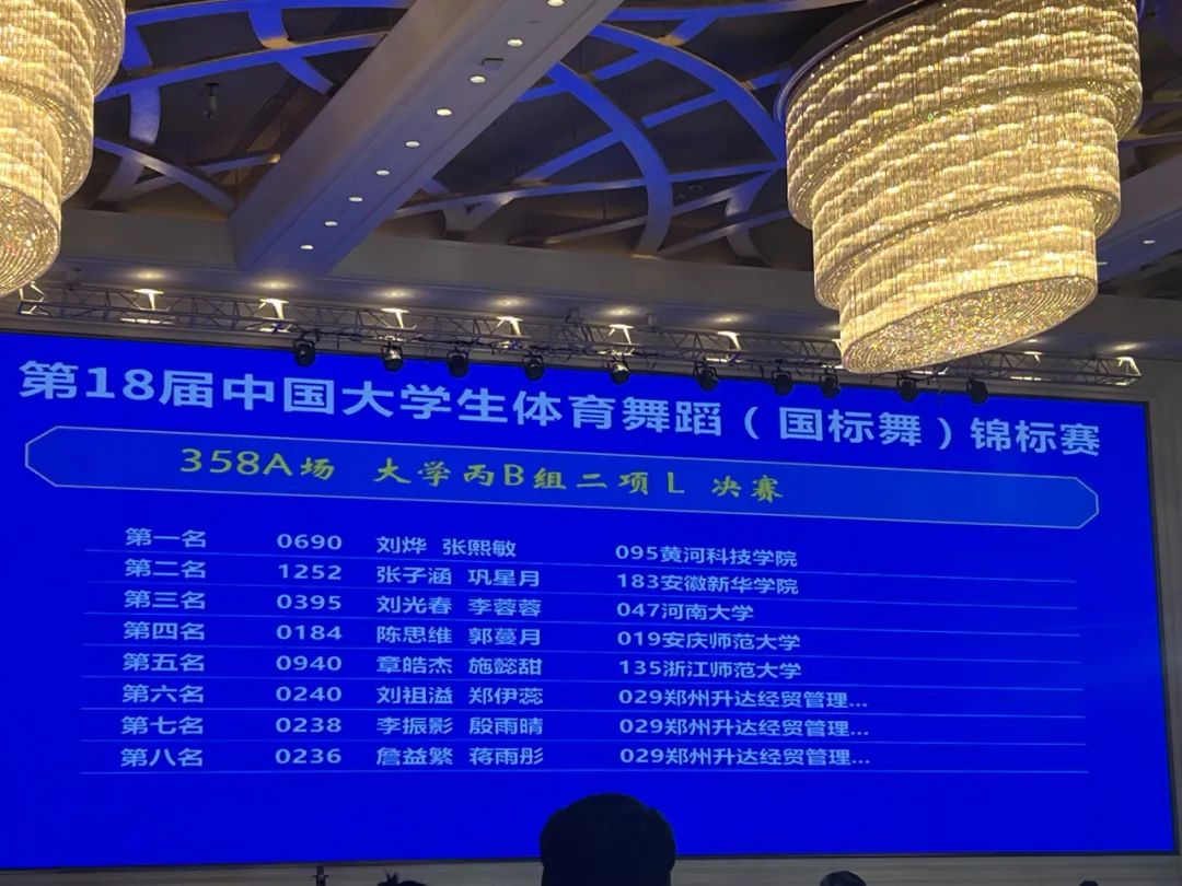 该赛事由中国学生体育联合会主办,作为全国高校体育舞蹈领域的顶级赛事,本次大赛吸引了来自北京体育大学、首都体育学院、武汉大学、中央民族大学等176所全国知名高校的1700余名运动员同场竞技。比赛历时5天,选手们在赛场上以舞为媒、以技会友,充分诠释了体育舞蹈将体育、艺术与文化深度融合的独特魅力,也践行了赛事“互鉴互融,同美同行”的办赛宗旨。比赛中,我校舞蹈学子用饱满的热情和精湛的技艺,征服了现场观众和评委。学生买世豪、陈雨彤获得大学丙B组三项拉丁舞冠军,刘烨、张熙敏获得大学丙B组二项拉丁舞冠军,程菲获得大学丙B组单人四项全能组亚军等优异成绩。