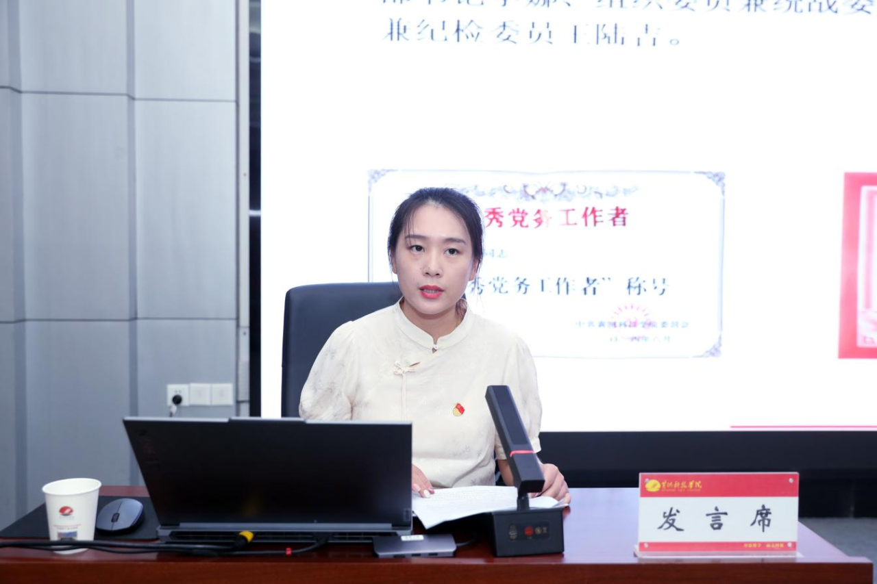 商学部会计学学生第一党支部书记李娜重点介绍了支部构建的“四阶四早”党员发展全链条培养体系,系统阐述了党支部推进党员发展各环节标准化建设情况,为提升学生党员发展质量提供了借鉴。