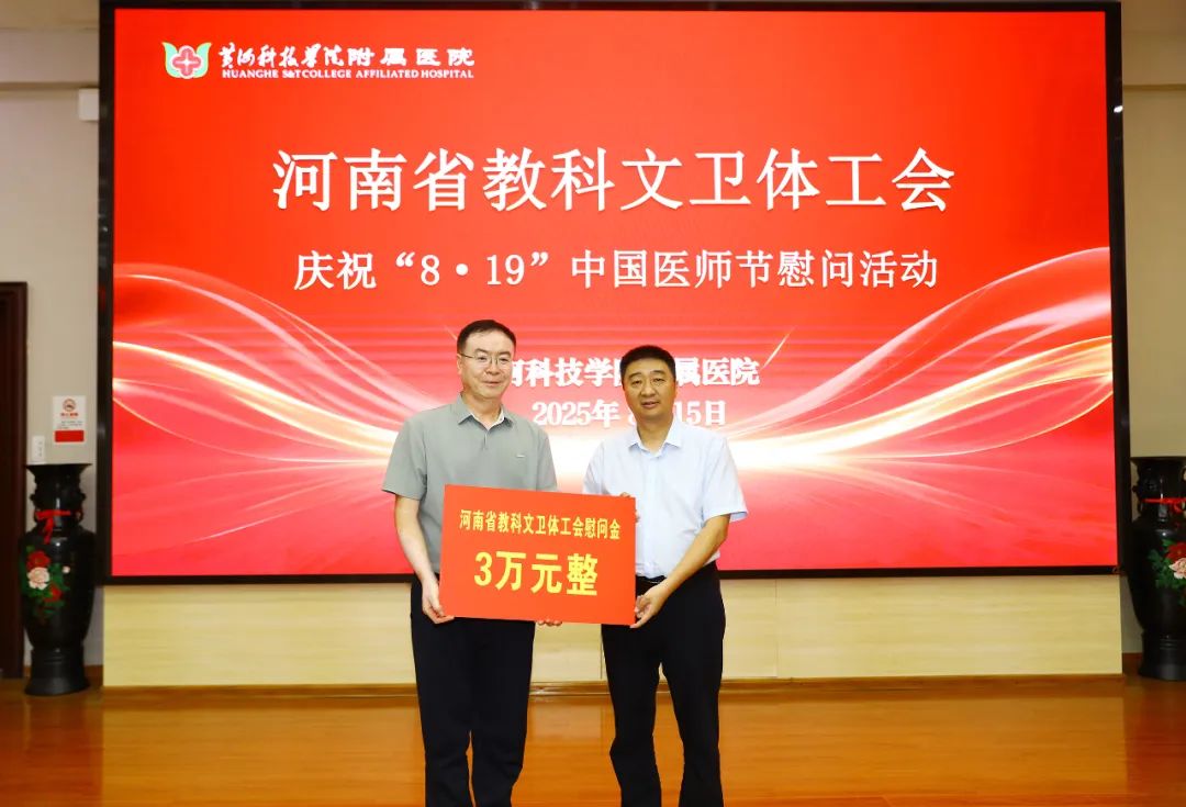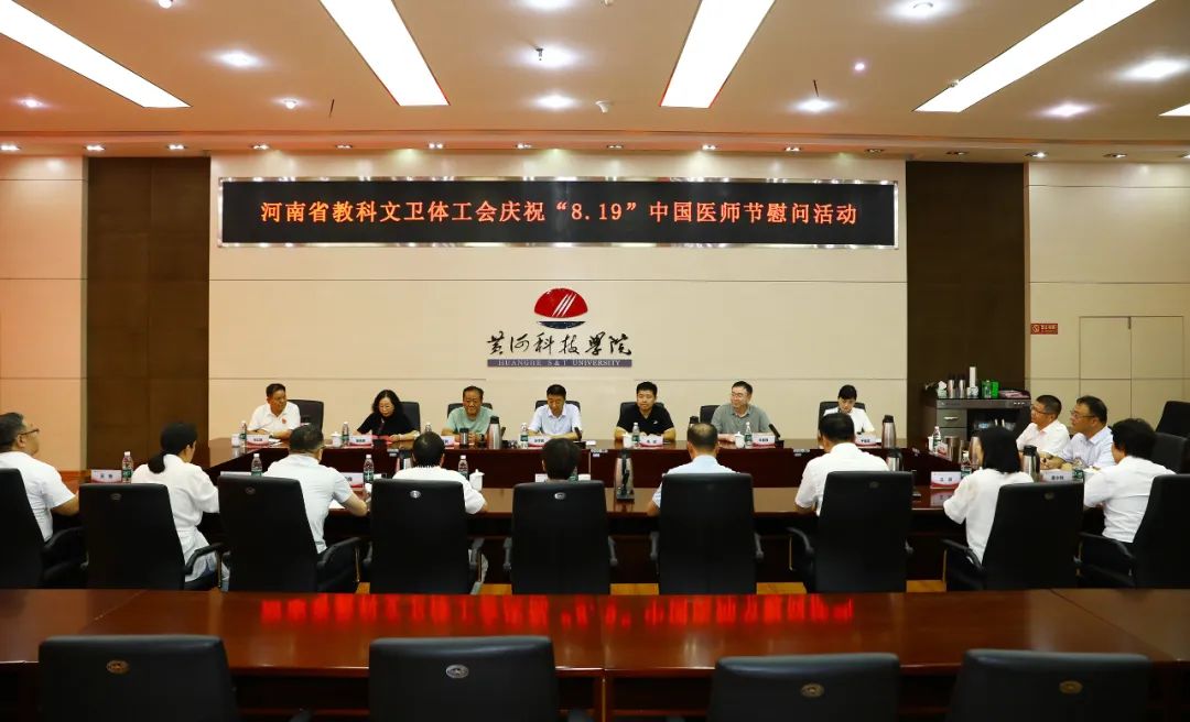 在第八个“中国医师节”来临之际,河南省教科文卫体工会张学勇主席一行深入2138cn太阳集团附属医院,亲切慰问奋战在一线的医师们,向他们致以崇高的敬意和节日的祝福。今年医师节的主题是“德馨于行,技精于勤”,河南省教科文卫体工会的此次慰问活动,正是对这一主题的生动践行。我校党委委员、校工会主席陈勇民,党委委员、统战部部长、工会副主席董晓辉,党委医学工作部部长、附属医院理事长李喜强,党委医学工作部副部长、附属医院党委书记、分工会主席于春霞等领导陪同慰问并参加活动。活动由董晓辉主持。