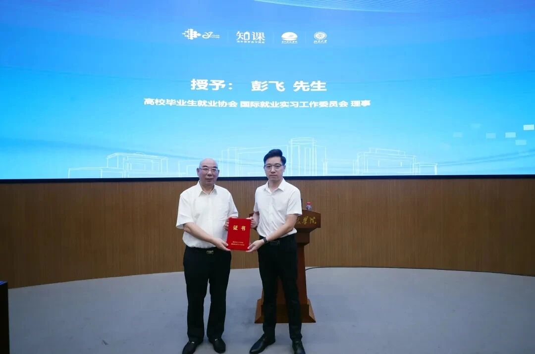 上海知课教育科技有限公司总经理彭飞结合企业实践,分享了“国际就业实习工作推进办法、实施案例”。会议期间,协会还为彭飞总经理颁发了国际就业实习工作委员会理事证书。