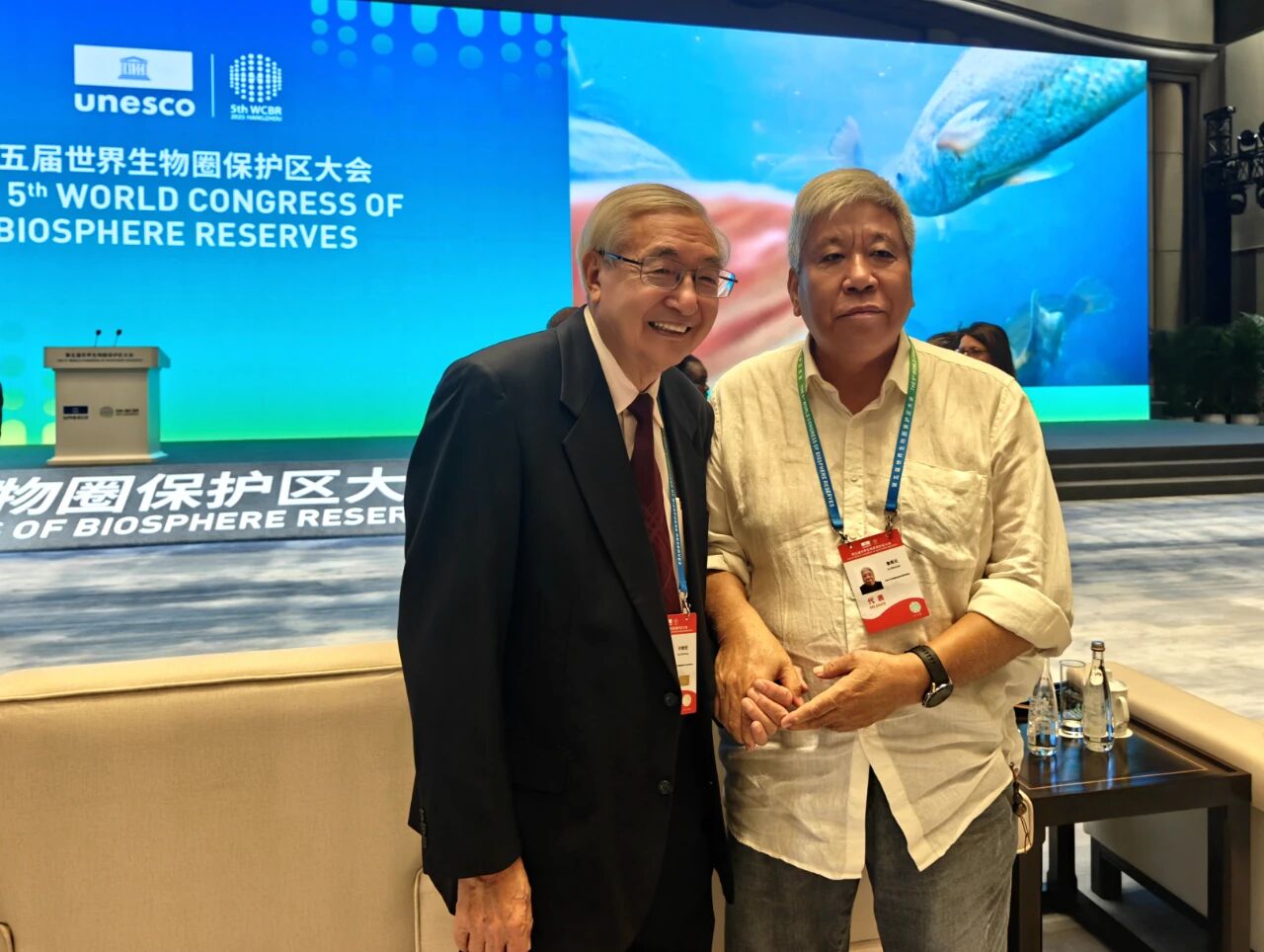 鲁枢元教授与中国人与生物圈专家咨询委员会主席许智宏院士在会议开幕式上