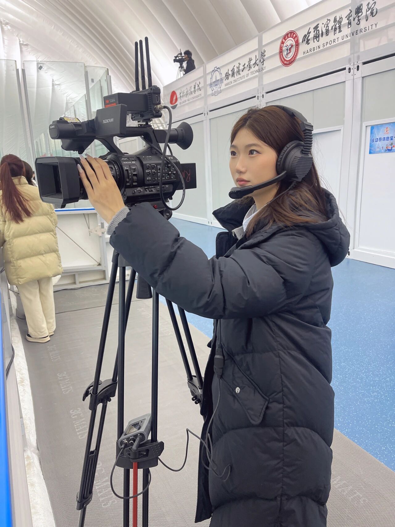 来自2025级网络与新媒体专业的靳梓彤参与了本次冰球联赛的媒体宣传工作,负责现场的视频拍摄与照片记录。她说:“这段经历不仅丰富了我的实践履历,更让我切身体会到专业课程中所学的新媒体采编、影像表达与现场传播技巧在真实场景中的运用方式,也让我第一次感受到作为媒体志愿者参与大型赛事的节奏与责任。通过这次实践,我对内容创作、活动宣传的流程有了更直观的理解,为未来从事新媒体相关工作积累了宝贵的经验。”