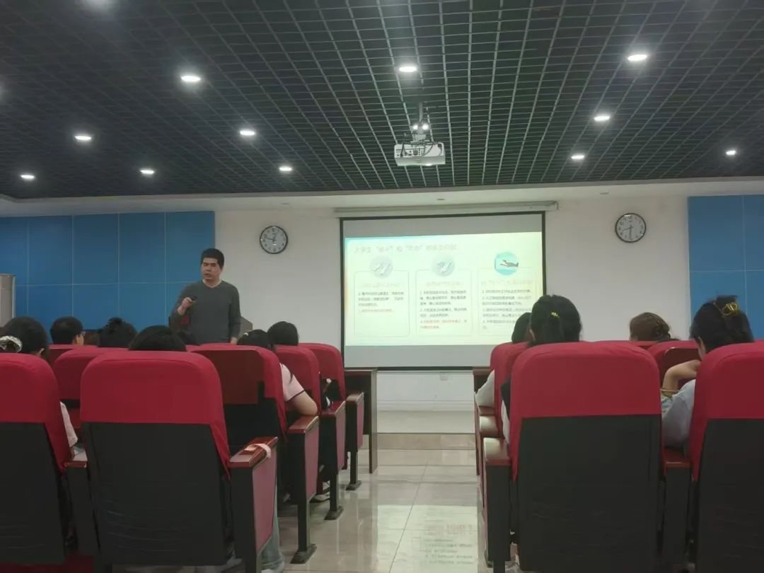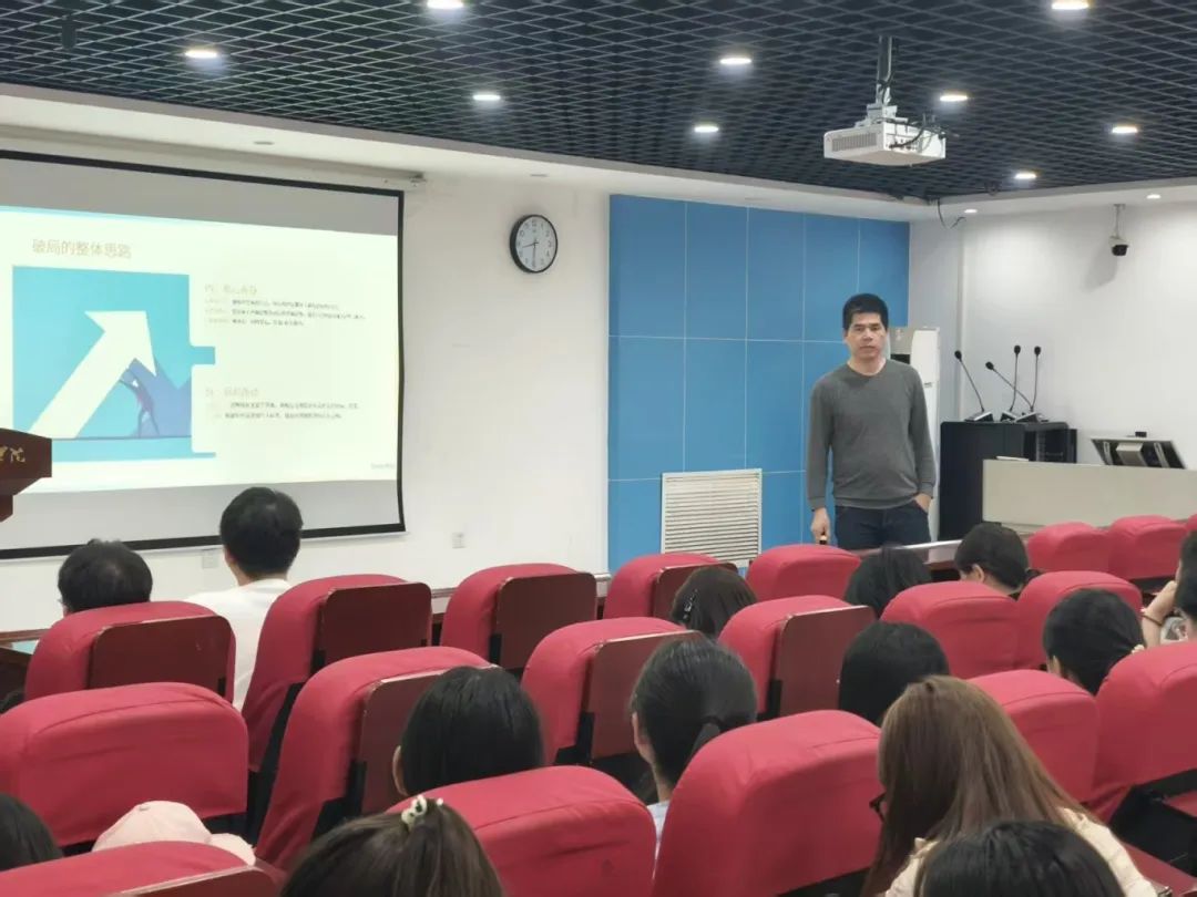 面对当下大学生 当中存在的一些“躺平”、“焦虑”等消极状态,为了帮助同学们摆脱这种状况,提升对未来的信心,并做好对自己的规划。商学部外语科教中心邀请校友2001级英语专业王密返校,于商学部教学楼608教室举行讲座。讲座由辅导员王洪剑主持,外语专业部分在校师生聆听讲座。