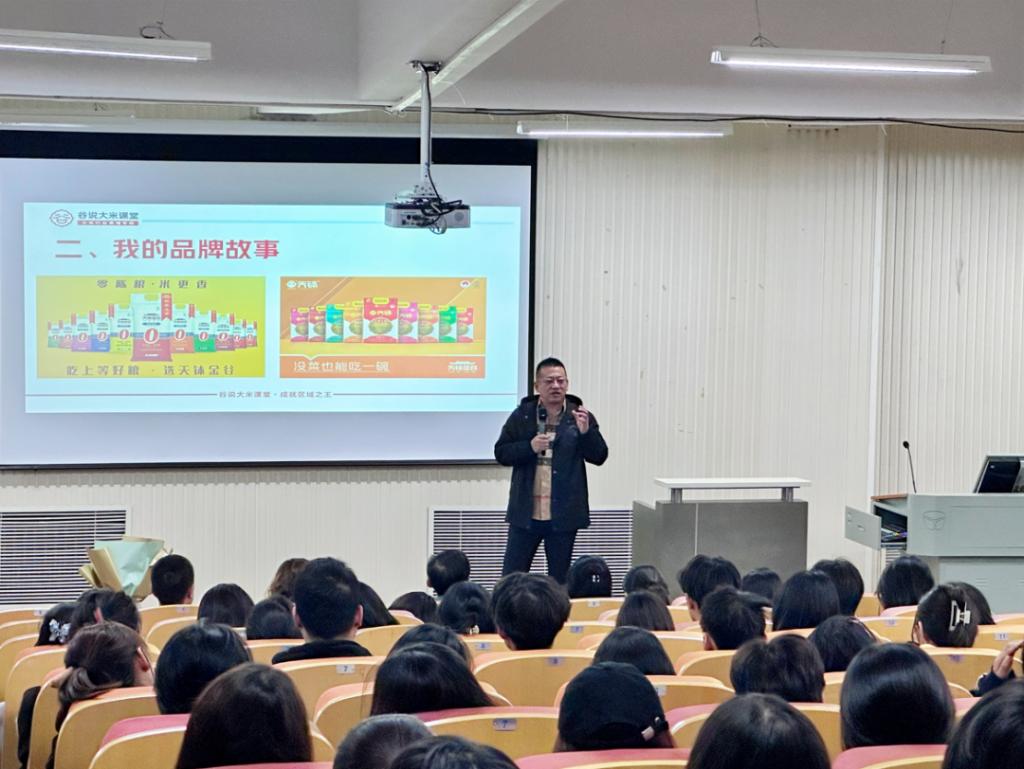 校友文化节活动期间,艺体学部设计艺术科教中心邀请校友刘畅返校,为师生带来“谷说大米课堂:从设计到商业价值的转化”的校友讲座。为在校的学弟学妹们分享了他的品牌故事、设计行业现状以及职业生涯规划。