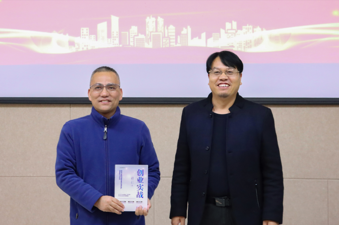 讲座前,举行了校友王建胜图书捐赠仪式。王建胜无偿为母校捐赠由他本人创作的《创业实战》著作,共56本图书。工学部分党委副书记路素青代表学部接受捐赠。