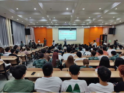9月11日,由国际学院承办的第十三期校友讲堂在实验楼报告厅举行,特邀2011级工商管理专业校友、知名网红陈翔宇、茹静宜夫妇返校为2023级新生作讲座。